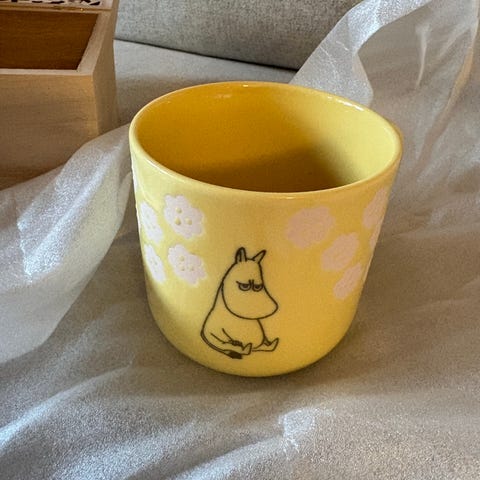 Nydelig og fargesterk Yamaka Mummitrollet-kopp fra Japan.
