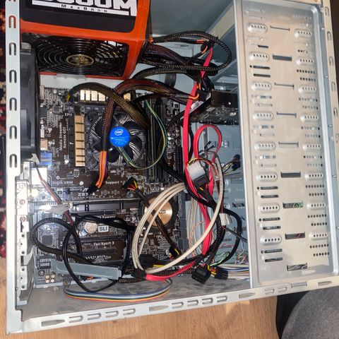 PC-kabinett i svart farge. Kabinettet har flere ventilasjonsåpninger, støtter standard ATX hovedkort og har flere utvidelsesspor for komponenter. Passer til bygging eller oppgradering av stasjonær PC.
