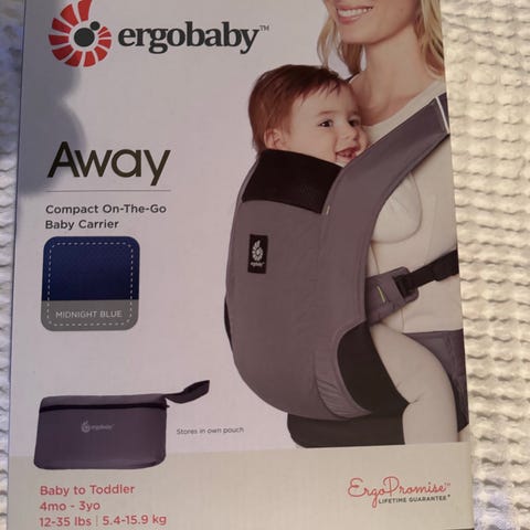 Fikk den til jul uten byttelapp men jeg har en annen bæresele så da selger jeg denne. Den er kun åpnet og sett på men aldri brukt. Fargen er blå.
