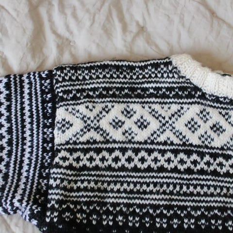 Genser i strikket i dobbelt Kid Sil Mohair, størrelse M. Selges for halvparten av garnprisen.