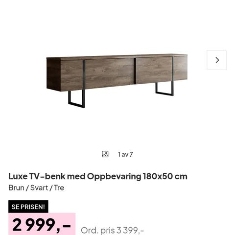 Praktisk TV-benk med hyller og skuffer..
