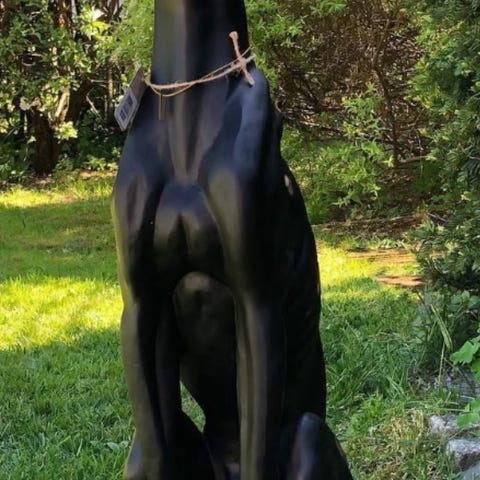 Eldre statue av Mynde/greyhound Sort. Massiv og tung høyde83 vintage