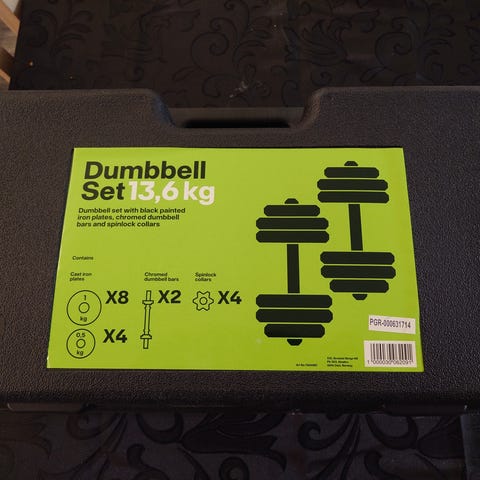 De fire 2,5kg vektskivene ble kjøpt utenom dumbell settet.