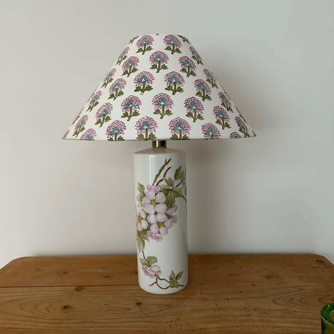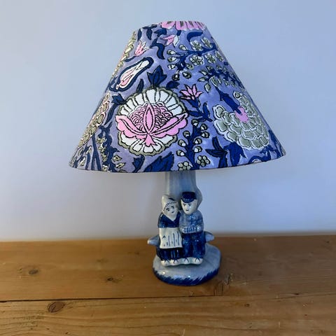 Søt lampe med motiv Håndlaget skjerm fra Studio Bazar Høyde opp til sokkel 18 cm til toppen av skjermen 32 cm