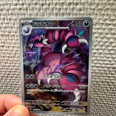 Pokémon Energy Recycler Super Rare fra det japanske settet Nihil Zero. Kortet er helt nytt ut fra boksen og ble puttet i sleeve med en gang. Det er absolutt ingen synlige skraper, hvite merker eller bøyninger på kortet.