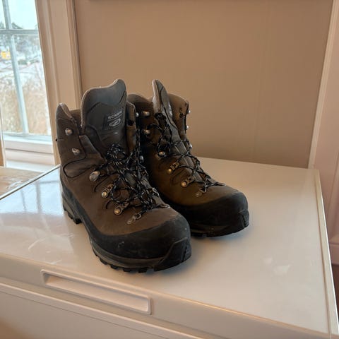 Scarpa fotturstøvel i størrelse 45, farge oransje og svart. Designet for fottur med slitesterkt materiale og godt grep på sålen.