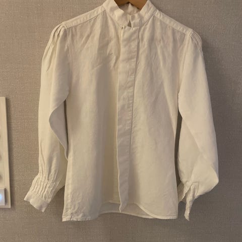 Bunadsskjorte som kan passe til jente mellom ca 8 og 12 år. Usikker på om denne er til en spesiell bunad. Den er pent sydd.