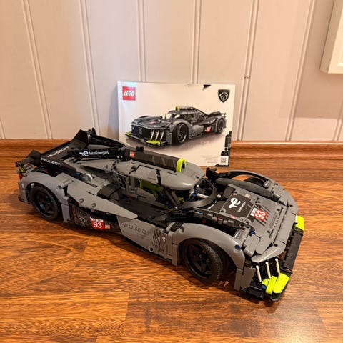 LEGO Technic Peugeot 908 HDi FAP bilmodell. En detaljert modell av Peugeot 908 HDi FAP, laget av LEGO Technic-serien, designet for bygging og samling.