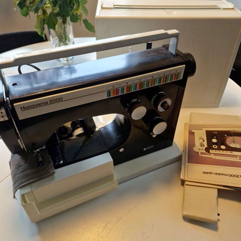 Brukt Husqvarna symaskin 2000 mod 6440 med ny kamsats. Maskinen er renset, oljet og justert Det følger med det som er vist på bildene. Den er klar til bruk.