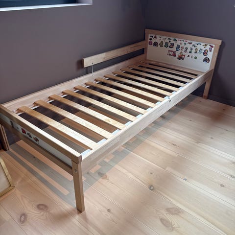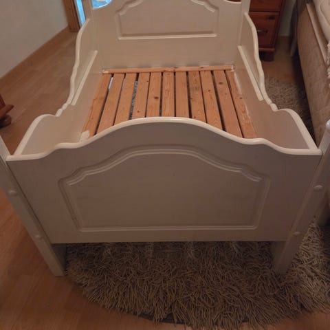 IKEA Busunge vokseseng blå 80x200. Pent brukt. Madrass medfølger + voksepute du kan legge i hvis du trekker den ut. Smart løsning ved at man kan trekke senga ut mer og mer etter hvert som barnet vokser.