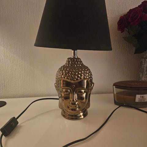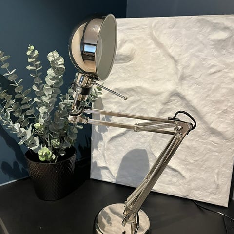 Godt, men pent brukt bordlampe fra Lampehuset. Lampeskjermen er kjøpt etter så den er ikke original. Lampen kostet rundt 900 ny. Ringen til å feste lampeskjermen er borte, men det har gått helt fint. Den er litt skjev derfor selges den billig.