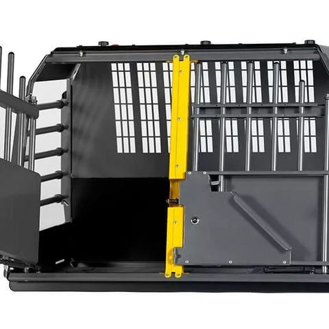 Stabil hundebur for stor hund selges. Buret er svært solid bygget og gir høy sikkerhet. Døren er ekstra høy og har justerbar låsemekanisme, og det er mulig å henge på hengelås. Bunnen består av en ny, kraftig treplate som nylig er montert. Metallet er behandlet med økologisk olje for beskyttelse og lang levetid. Passer godt for store hunder som trenger et trygt og robust bur hjemme eller i transport.