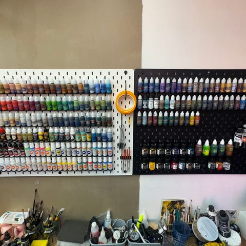 Praktisk oppbevaring av maling, dropper bottles ala Armypainter/ Vallejo. Selges samlet.