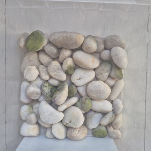 Poser ned småstein, enten til akvarium eller til pynt som limes på noe.