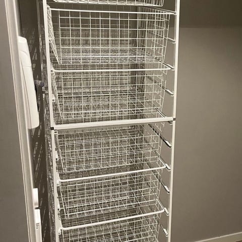Hele og intakte, fullt brukbart. Trenger kanskje et strøk maling, men må ikke. Med hyller og skuffer. Se mål på bildene.