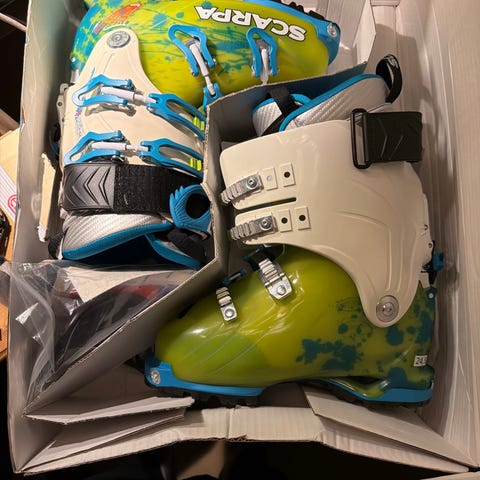 Tecnica Mach1 95 W alpinstøvler i størrelse 220-225 mm. Støvlene er lys grå med kvite detaljer og designet for alpint bruk. 4 spenner for justering og god passform. Mjukt fòr innvendig. Ca 2 år gamle. Lite brukt.