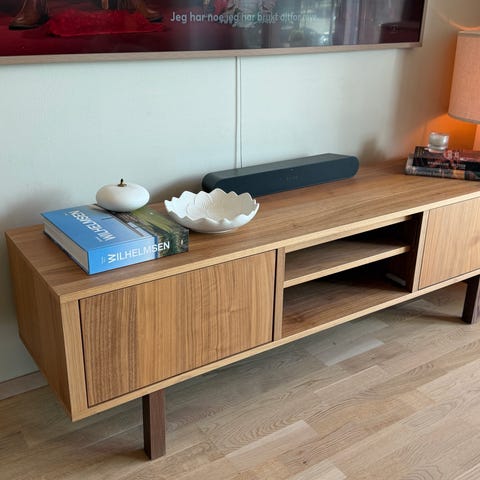 Pent brukt ikea stockholm tv bord selges da vi har kjøpt nytt. En av hyllene forsvant i flyttinga, derfor den lave prisen. Utgått modell. Må hentes.