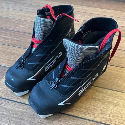Alpina F-Race FC0 langrennsko i rød farge. Skoene har glidelås foran og borrelåsrem over ankelen for justerbar passform. Designet for langrenn med fokus på støtte og komfort.
