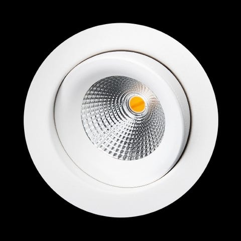 dobbel downlight for innendørsbruk med 42° lysspredningsvinkel og patentert 30° trinnløs vipp i alle retninger. Godt egnet for alle rom, inkludert bad. Produsert i trykkstøpt aluminium med børstet eller pulverlakkert hvit eller sort overflate, og klart frontglass. Integrert, effektiv LED-chip med svært god lyskvalitet. Dimbar med faseavsnittdimmer eller DALI. Vi anbefaler LEDDim 400 og LEDDim Smart. Verktøysfri montering, og mulighet for viderekobling. Hurtigkoblingskontakt på kabelen mellom driver og downlight gjør at driver kan installeres og kobles ferdig før himlingen blir malt. Lav innbyggingshøyde, 48mm, og hulldiameter Ø83mm. Beskyttelsesklasse IP44.