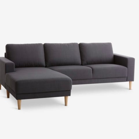 Sofa m/sjeselong FALSLEV – svart imitert skinn