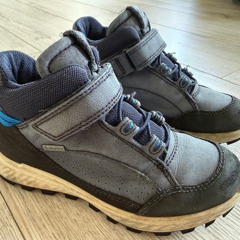 Skoene har en kombinasjon av tekstil og syntetiske materialer, med snøring og borrelås for justering. Skoene er designet for barn og egner seg for daglig bruk.