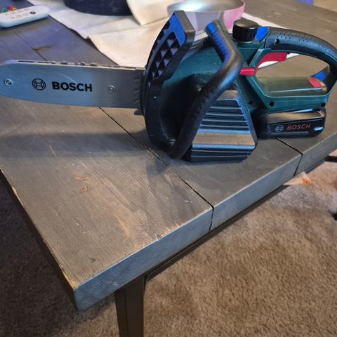 Selger et Bosch Motorsag Arbeidssett. Det er pent brukt, men klistremerket på hjelmen er tatt av. Motorsagen trenger nye batterier. Følger også med briller fra et annet merke. Kan sendes mot at kjøper betaler frakt. Kan sendes med posten, PostNord, Helthjem eller fiks ferdig. Se gjerne mine andre annonser for mer klær og utstyr til barn.