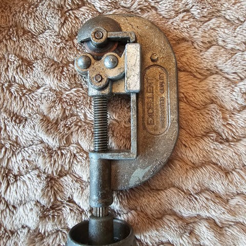 Reservert - Ny og ubrukt rørkutter for plast avløpsrør.