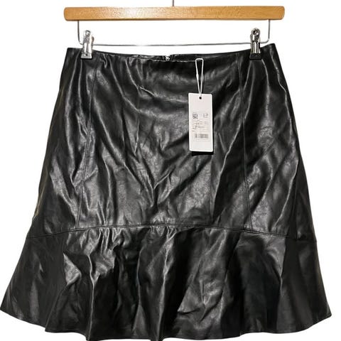 Kult skinnskjørt i str 34. Kan passe en typisk str s/m pga strikken i livet og at man kan ha skjørtet enten høyt eller lavt i livet. Skjørtet har strikk i midjen og lommer i sidene. 100 % skinn.
