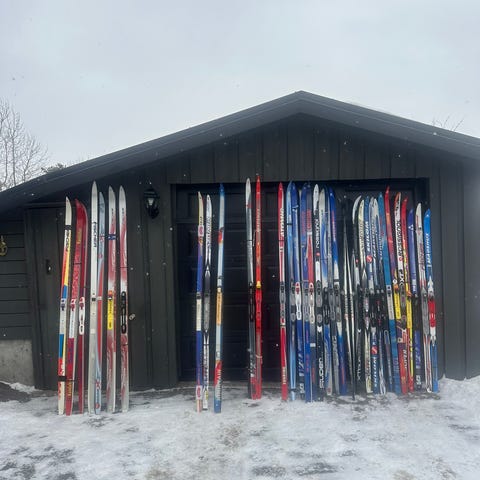 Atomic felleski, langrenn, 195 cm lange, 4,5 cm brede under sålen og 4,1 cm brede målt oppå. De er unisex. De er så godt som helt nye. Så vidt hatt på beina kun en gang. De er mest hvite og noe sorte med binding. Nypris er kr 4000 kr. Selges pga helseproblemer.