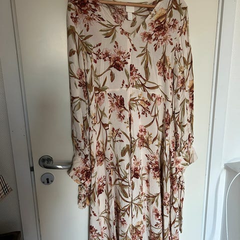 H&M kjole i størrelse 42 for damer. Kjolen er gul med blomster. Passer til fest og hverdag.