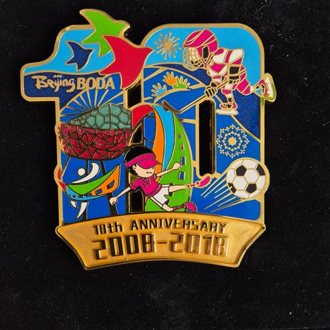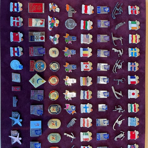 Olympiske Leker Lillehammer 1994 pins som viser en isbjørn med to barn Kristin & Håkon sittende på ryggen. Pinene har farger med detaljer i oransje, lilla, hvitt og svart. Passer som samleobjekt eller suvenir fra vinter-OL i 1994.