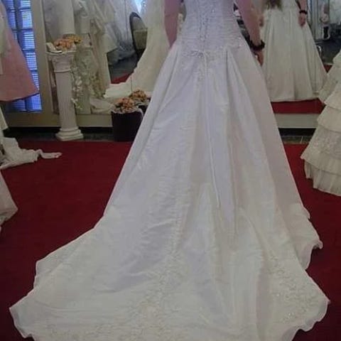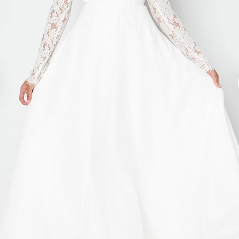 Nydelig brudekjole som er ny og ikke vært brukt. Har nydelige detaljer med perler og blonder på overdelen, og et fantastisk tyllskjørt.