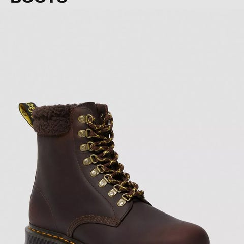 Dr. Martens støvler i størrelse 44, svart farge. Støvlene har en robust konstruksjon med gummisåle og er foret med et mykt, isolerende materiale som gir ekstra varme. Egnet for bruk i kaldt vær.