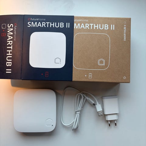 Olisto Smarthub II smarthub med kabeltilkobling. Enheten brukes til å koble og styre smarthus-enheter via nettverk.