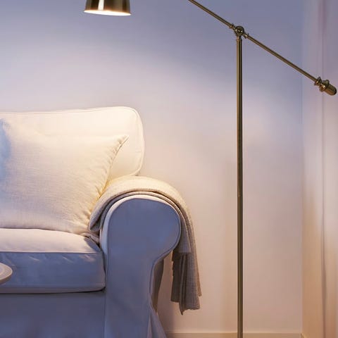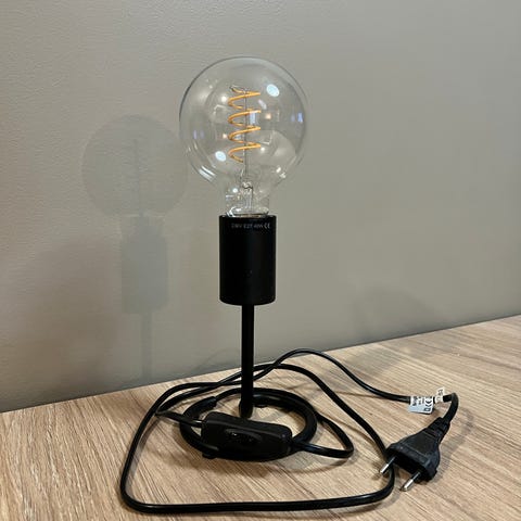 Kul lampe fra Lagerhaus som sitter med beina ned fra kanten av bordet.
