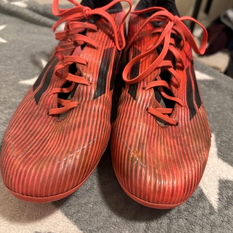 Nike Hypervenom fotballsko i grønne og oransje farger. Skoene har knotter under sålen for bruk på gressbaner. Størrelse 42,5