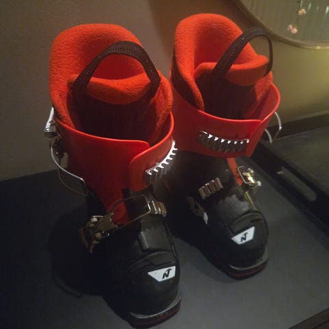 Nordica slalomsko/slalomstøvler i størrelse 18, med rød og hvit farge. Tilsvarer vel str 28-29. Kjøpt brukt, men rakk ikke å bruke før de ble for små.