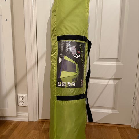 Teltet er laget av polyester med PU-coating og har en grønn farge. Se bildet for spesifikke mål og nærmere info.