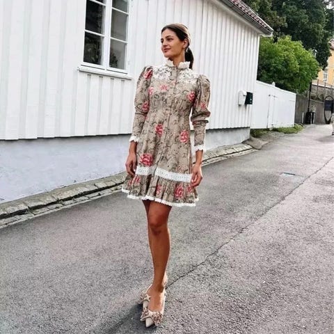 Nydelig minikjole i A-fasong med rund hals og blondedetaljer.