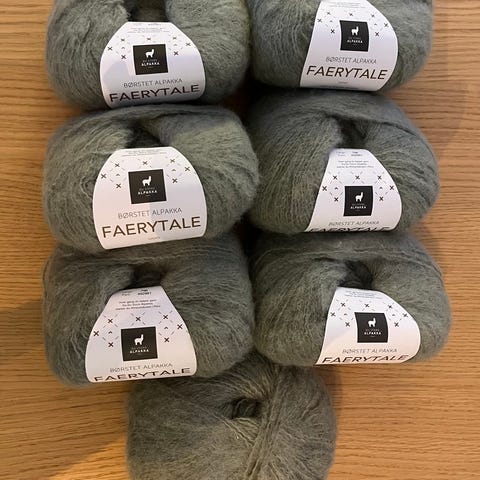 Selger 85 g Faerytale Brushed Alpaca-garn fra Du Store Alpaca fordelt på 2 nøster.