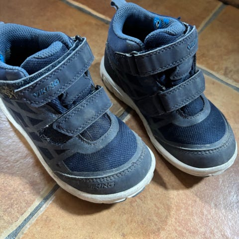Viking barnesko i størrelse 27, designet for unisex bruk. Skoene har svart farge og er utstyrt med borrelås for enkel justering. Sålene har godt grep, egnet for aktiv bruk.
