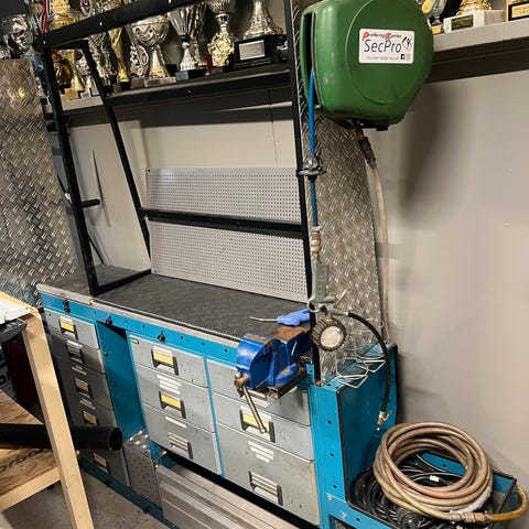 Godt brukt Sortimo innredning av murer,kan sikkert vaskes litt. Skufferekke og kort hylle er b70xh110 lange hyller er b120xh110 . Stige holder 180L kan selges separat 3000