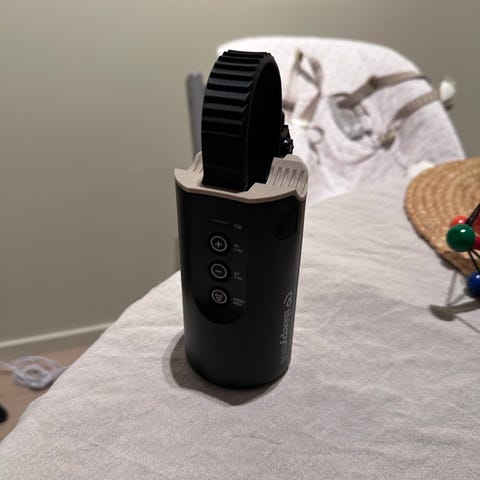 Sleepytroll Smart Baby Rocker med smart sensor som vugger vogna når babyen trenger det. Litt vanskelig ladepunkt, så se til at den lyser når den settes til ladeing.