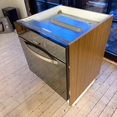 Bosch kompakt stekeovn/mikro i rustfritt stål. Ovnen har et digitalt display og flere kontrollknapper for justering av temperatur og funksjoner. Egnet for montering i kjøkkeninnredning som en integrert løsning.