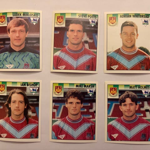 Fire originale spillerstickers fra Merlin Premier League 95.