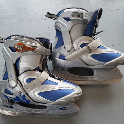 Selger et par regulerbare skøyter i str 33-36. Skøytene bør slipes, men fungerer ellers fint.