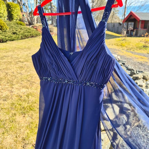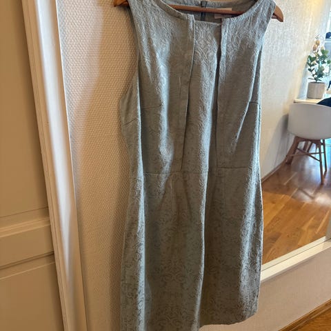 Klassisk kjole flott mellomblå farge. Glidelås i rygg. Kjolen er i viskose (polynosic) Merke Kriss. Kjøpt på Steen&Strøm i Oslo.