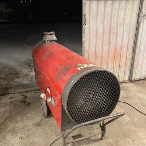 Denne Dantherm MC 22 starter kjapt kjapt og varmer godt opp verksted på 300 m2.