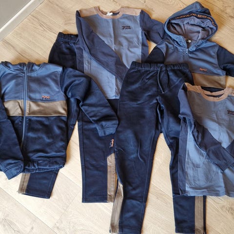 To av t-skjortene, en shorts og en pysj-genser har noe flekker. Pysjgenseren med flekker, samt en pysjgenser til har også raknet noe i sømmen nederst. (Se egne bilder).