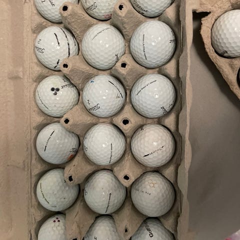 Samling av golfballer i forskjellige farger og merker. Det er 137 baller som er møkkete, men veldig mye baller av god kvalitet. Kom med bud